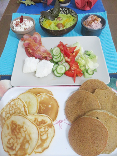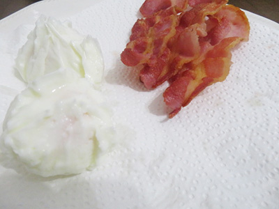 焼きベーコン、ゆで卵、好みの生野菜:適量