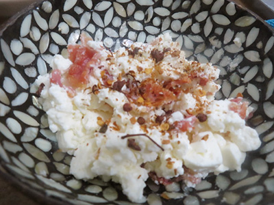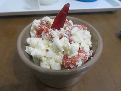 ベーコン、山椒粉、ペペロンチーノ入れて混ぜる。