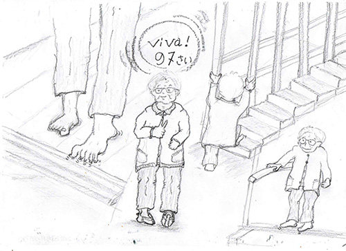玄関の上がり、急な階段、多数ある扉の敷居、