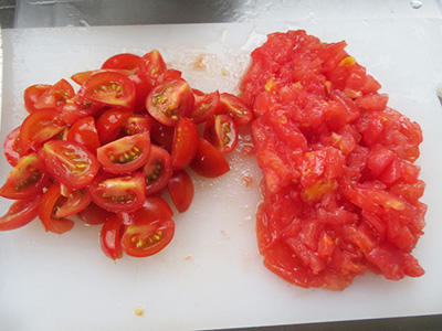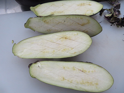 EVOオイル:ナス用大さじ2、ソース用大さじ3