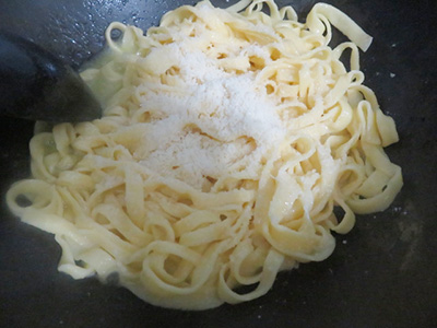 (9)パルメジャーノチーズを入れる。