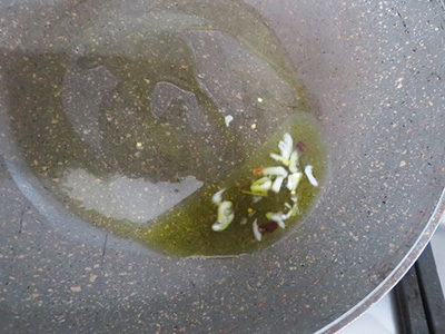ペペロンチーノを入れて香りを出す。