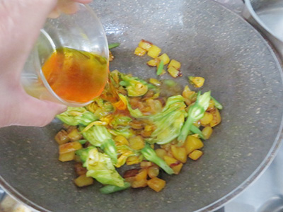 飾り用の花ズッキーニを入れて火を通す。