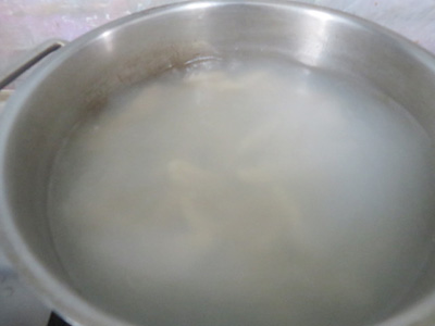 塩入りの湯でゆでる。