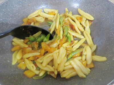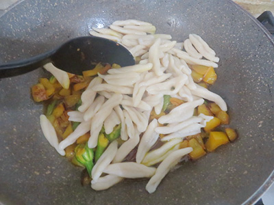 (8)ショートパスタを入れる。