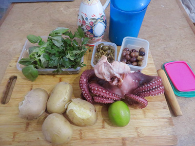 EVOオイル:タコ用大さじ2、バジリコ用適量
