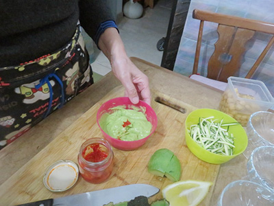 (10)アボカドソースをかける。