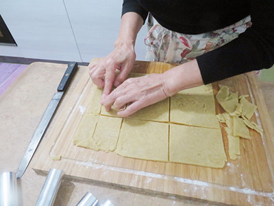 (7)10〜12cm角で切る。
