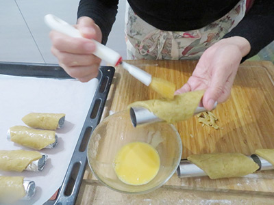 (9)溶き卵を表面に塗る。