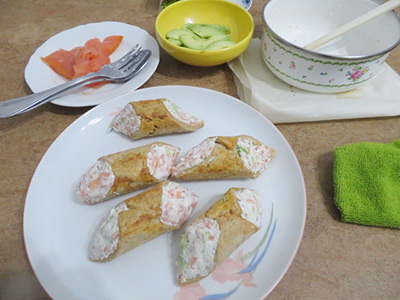 サーモンの塩味カンノーロ