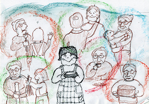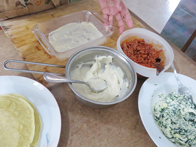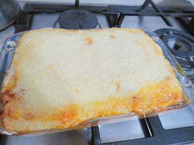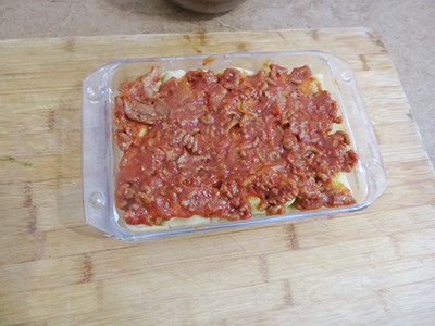 リエティ風ミートソースにキノコの炒めたものを入れました。