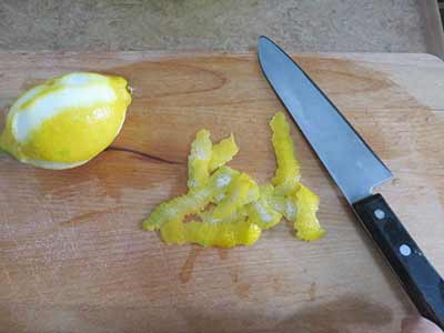 ・レモンの皮を薄くむく。