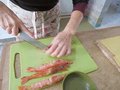 (7)エビの掃除をして、