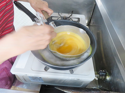 (3)卵にレモン砂糖を加えて