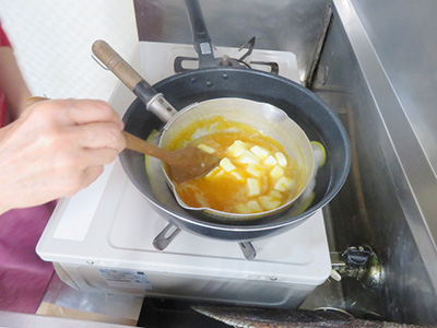 (9)火を止めてバターを入れる。