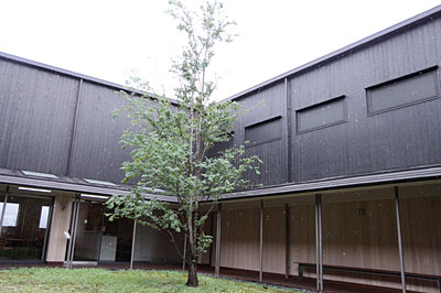 | 中 村 | 桂の木なんですけれどもね、 この記念館を象徴するような シンボルツリーが欲しかったんです。 2本、寄りそって立ってる双樹を 探したんですよ。 |