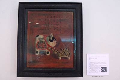 | 玉 置 | 僕が伊丹さんと知り合った頃は、 松山では伊丹さんっていうのは 伊丹万作の息子だったわけですね。 けれど、もう『お葬式』の映画の頃には それが逆転して、十三のお父さんが万作さん、 というふうになってたんですけど。 地元ですから、 万作さんのものもなにかひとつ展示したいと思い、 中村さんと宮本さんに相談したところ、 伊丹十三さんの生まれた時に描いた 万作さんの絵を、飾ることになりました。 |