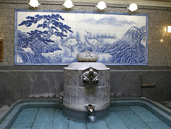 明治27年に建築された風格ある建物は、 まず2階席で説明を受けて、1階の神の湯へ。