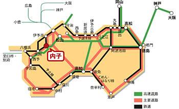 松山ICから内子五十崎(いかざき)ICまで、お車で約25分。