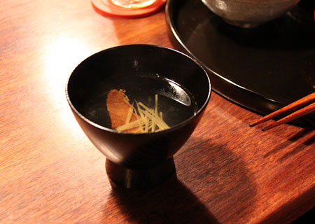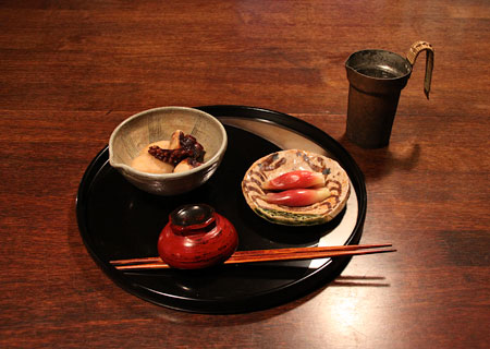 | 矢吹 | そうは言うけれど、 ちゃんと家庭惣菜風の芋たこだったよ。 「辻留」さんなんかがつくったら、 生たこから、たこはたこで煮て、 芋は芋で煮て、 最後に盛りつけるんだけれど、 伊丹さんは二つ合わせて煮るみたいな、 やや家庭惣菜風になっていた。 本来はどういうものをつくろうと 思ってたのかわからないんだけれど。 |