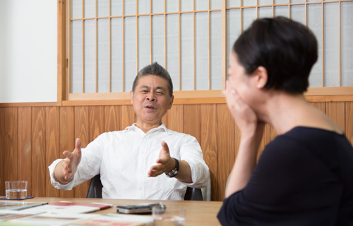 | 武井 | 撮影のスタイリングに伊藤さんが加わってくださって、 そのとき、1回洗ってしわしわのままの 写真を撮ったんですよ。 それがすごく転換だったと。 「これで、商品を紹介する写真じゃなくて、 生活を提案する写真になったんだよ」。 そんなことまで実はぼくらは考えずに‥‥ |