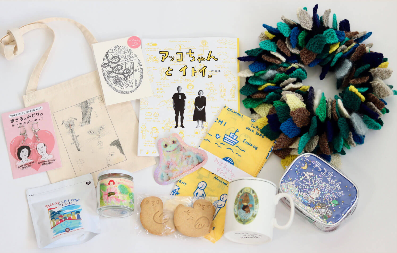 今回の展示作品をモチーフにしたアイテムを