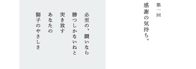 | ── | じゃあ、 感謝の気持ちを素直に伝えられるようになって、 感謝の気持ちを伝えたいとも思うようになって、 そのことが、五行歌の創作につながっていった。 |