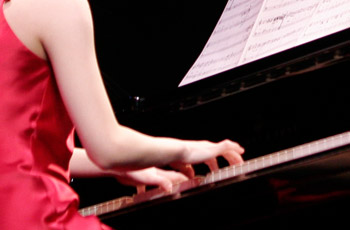 | 山下 | さっきの『The Entertainer』のメロディを使って 原田美奈のジャズ演奏をしてもらいましょう。どうぞ。 |