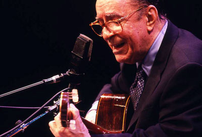 | プロローグ──舞台の上で時間が止まった話── ──2003年は、火星がやってきましたよね。 6万年にいちどの火星が。 ジョアン・ジルベルトと、同じ時代に生きて、 彼が演奏し、歌う姿を見ることができたということは それに近い奇跡だと思います。 あの広い空間にたった一人で 歌っている姿を見たときに、 そこに一つの宇宙が存在しているかのようでした。 ジョアン・ジルベルトという宇宙が。 ジョアン・ジルベルトという完璧な宇宙が。 (大貫妙子さん 談) ![]() ほぼにちわ。 「ジョアン・ジルベルト」と言われて ピンとくる人は、たぶん、 かなり洋楽に詳しい人だと思います。 いや、かなり洋楽に詳しい人でも、 「歴史上の人物」みたいに思っているかもしれない。 ジョアン・ジルベルトは 「ボサノバ」という音楽を生み出した ブラジルの音楽家です。 2003年の夏の終わりに初来日、 東京と横浜でひらいた4日間のコンサートは、 冒頭の大貫妙子さんの言葉にもあるように、 「奇跡」と呼ぶにふさわしいものでした。 「ほぼ日」の音楽好きのひとり糸井重里も、 行かなかったことをかなり後悔しているらしいです。 ジョアン・ジルベルトのコンサートが終わった数日後、 ジムでばったりお会いした沼澤尚さんは、 興奮気味にこんな話をしてくれました。 ──ジョアン・ジルベルトの来日公演、すごかったね。 ジョアン、ステージで、まったく動かなくなった時間が あったでしょう? あれは、どういうことだったのかを、 ブラジル人の彼のスタッフから、聞いたんだよ。 ジョアンはあの日、 「いつ死んでもいい」と思いながら 歌っていたんだって‥‥。 それは4日間行われたコンサートの3日目、 横浜公演でのことでした。 ![]() 初日と2日目、東京国際フォーラムのコンサートで ジョアンをたいへん驚かせたことがありました。 観客の拍手です。 日本のオーディエンスの、 あまりの熱い拍手に感激して、 思わず立ち上がってお辞儀をしたジョアン。 そんなこと、いままでの彼のコンサートでは、 ありえなかったことでした。 母国ブラジルでのコンサートは、 彼にかぎらず、すべからく 「客も大騒ぎして一緒に歌う」ということが ほんとうに日常のことだといいます。 そんな国から来たジョアンは、 自分の音楽を、静かに、熱く聞き入り、 1曲ごとにおしみない拍手を送る 日本のオーディエンスを前に、 心から「うれしい」と感じたそうです。 それですっかり日本びいきになったジョアンは、 残りの公演を、悔いのないように演奏しづつけます。 そして横浜での3日目、事件が起きました。 ![]() 拍手のなか、歌い終わったジョアンが ステージで目を閉じたまま、 ぴくりとも動かなくなったのです! いや、近くで見ていた人には、 「指先がぴくり」と動いたのはわかったといいますが、 5000人を収容する会場ですから うしろの方の人はとくに 「何が起きたんだ?!?!」と思ったはずです。 それでも大きくは騒がず、 拍手を続けました。力いっぱい。 拍手をしながら考えたのは、 気絶したんだろうか、 あまりにすごい演奏で力尽きて休んでる? 眠っちゃったのかもしれないよ。 いや‥‥死んじゃったんじゃないか?! いや、何かに怒っているんじゃないか (理由はわからないが)。 などなど。 ジョアン・ジルベルトのステージは 彼がたったひとり、どんなに広い会場でもひとり、 ギターを持ち、歌う。という、 ほんとうにシンプルなものです。 なので、周りには誰もいない。 5分。10分。 拍手が続くなか、ジョアンは動きません。 拍手をする手も熱く、じんと痛くなってきます。 あ、動いた。手がちょっと動いた! というようなざわめきのなか、まだまだ拍手はつづきます。 ジョアン、ぼくらはここにいるよ! 起きて! また歌って! 演奏して! そんな気持ちで。 心臓発作でも起こしたのではないかと心配した ブラジル人のスタッフがジョアンのもとに歩みよります。 なにかをささやくと、軽くうなずくジョアン。 ああ、大丈夫みたいだ。 けれども、それでも、ジョアンは動かず、 演奏を始める気配もありません。 15分。20分。 永遠に続くかと思われた時間がすぎ、 もう拍手も(手が痛くて)限界だと思ったころ、 やがて──ジョアンはゆっくりと顔をあげて、 静かに、ふたたび演奏を始めました。 あっけにとられる観客。 な、なんだったんだろう?!?! あまりにも「ふつうのコンサート」では 起こりえない事件に、 観客も面食らいながら、 またジョアンの歌が聴けることを嬉しく思い、 アンコールの時間をすごしました。 もちろん、そのコンサートは、 誰もが心から満足する、すばらしいものになりました。 同じことが、 最終日の東京国際フォーラムでも起きました。 3日目とちがったのは、 長い沈黙のあと、ジョアンが 「A-ri-ga-tou(ありがとう)」と言ったことでした。 ![]() そのことを、沼澤さんは、 ブラジル人スタッフに問うたそうです。 あの「沈黙」はなんだったの、と。 するとスタッフからは ──眠っ