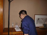 出るのか出ないのか?鼠穴の怪異を検証する 担当:ハリグチ みなさんこんにちは。ムーン・ハリグチです。 本題に入る前にひとこと。 いやあ、きのうのルーキーさんの回はよかったですね。 すごく素直に自分を語った言葉で、 ちょっと感動してしまいました。 すでに仕事のスタイルを確立して、プライドもある人が、 ああいうふうに書けるというのは、 すごいことだと思います。 ほぼ日の効力、恐るべし。ですね。 ●これまで何があったのか さて、とうとう鼠穴に泊まり込んでしまいました。 今回は当然その顛末を記すわけですが、 まず、「ピタピタくん」「かさかさくん」以外に、 これまで鼠穴でどんな怪奇現象が起ってきたのか、 それをお伝えしましょう。 以下はもぎ・カエル部長による、 鼠穴で実際にあったエピソードの紹介です。 ============================================== その1.入居時、すでにお札が... 引っ越してきた当初、会議室のところに お札がはってあったが、 べりっとはがした。まだ跡ものこってるよん。 赤マル内がお札のあとです。 その2.毛布をかけてくれる女の人 以前鼠穴にいた人が、 夜中に、現在作業部屋と呼ばれている部屋に寝ていると、 「ふわっ」っと毛布をかけてくれた。 →ぜったいそのときに鼠穴には人はいないと ウラがとれてる。 その3.熱源のないところでプラスチックが溶ける 2Fの会議室に時計がありました。 ある日、会議中にdarlingが、 「おい、西田部長、時計とまってるぞ」と。 電池がなくなっちゃったかな?とおもって 時計をとりはずしてみると、 プラスチックのワクがぐんにゃり溶けて 秒針をとめていたことがわかった。 しかし、どこにもそのそばに熱源はないのさ。 あ、そうそう、まあいいや、っておもって その時計文字盤と針だけにして、しばらく つかってたんだけど、 このあいだまた時計がとまってて、 どうしたんだろっておもたったら、 今度は、針がとけて、文字盤にぺったりはりついていた。 →針と、ワクのプラスチックの融点がちがうってことは おおいにあるけれど、でもじゃあなんで、 最初に溶けたときに針はとけなかったの? その4.鼠穴のロプ・ノール ある秋の日、土曜日に金さんが会社にきてみると、 電脳室の前に忽然と湖が。。。 以前から冷蔵庫から水がもれるのは有名であったが、 こんどの水たまりは冷蔵庫からはあまりに遠い。 誰かがこぼしたのにきがつかなかったのでは? 「あんだけこぼせばバカでも気がつく」 ============================================== これ、全部ほんとらしいです。 コワイですよねえ。 とくに時計が溶ける、なんてのは、 考えただけで寒気がします。 ●いよいよ決行 そして木曜の夜、 前回、内山さんがご紹介した霊界グッズもそろえ、 いよいよ泊まり込み検証が始まりました。 ところがですねえ、 この日はスタッフの方もお忙しかったり、 darlingはdarlingで、鼠穴に遊びにきたベイちゃん、 そのお友だちの小松さんたちと話し込んでたりで、 なかなか皆さんお帰りにならない。 深夜1時を過ぎても昼間のようににぎやかです。 これじゃあ、出るものも出ないですよね。 だからとりあえず「待ち」の状態だったんですが、 そんな中、何通かの応援メールが届き始めました。 激励くださったみなさん、どうもありがとうございました。 代表で、田頭 聡さんのメールをご紹介しましょう。 AM1:17 ============================================== ひどい目隊の皆様、こんばんは。 ええと、今夜ですよね。泊り込み探検。 どうでしょう。何か怪異現象は起きたでしょうか。 以前、一方的に宣言しましたが これから1時間おきに応援メールを送ります。 (一部抜粋) ============================================== おお。1時間おきに応援メール。 なんと心強いことでしょう。 これに対するルーキーさんのお返事はこうです。 AM1:35 ============================================== 敬礼っ!!ひどい目隊の内山であります。 ただいまの時刻、1:35分。 3階および4階は、異常なしっ! 以上、報告おわり。 (応援ありがとうです) ============================================== これを見て、 こわがりのルーキーさんも、今日は乗ってるんだな、 と思って、ぼくは一安心しました。 ところがです。 そんなみなさんの激励を踏みにじるような、 とんでもないことが起ってしまったんです。 ●ええ〜っ、脱走した!? 2時すぎ、まだみなさんお帰りにはなりません。 勝負はまだ先だと思い、 ぼくはこたつに寝ころんで休んでいました。 するとそこに、うりぞうさんがやってきて、 こうおっしゃるのです。 「ルーキーさんがいないんです」 え、そんなはずは... と思ったんですが、 探してみると確かにいない。 そういえば、少し前、 なぜか帽子をかぶって下の階におりていく ルーキーさんを見たような気もします。 うりぞうさんも、なぜかGジャンをはおって、 そわそわしているルーキーさんを見ています。 さらに聞き込みしてみると、なんと。 ルーキーさんは金澤さんに、 鼠穴のカギまで借りているでは