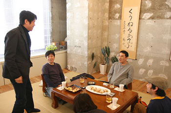 | ── | まあまあ、お座りになってください。 いま、職業に就かれたきっかけを みなさんにお教えいただいているところです。 |