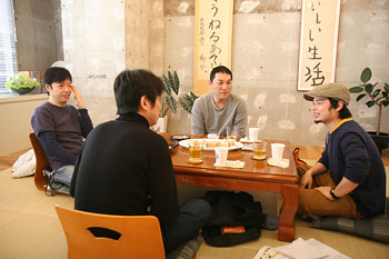 | ── | ‥‥となると、みなさん、どちらかといえば 特別に夢みていたことを 実現するために活動したわけではなく、 部活の延長のようにここまで来た、 ということなんですね。 一方、天久さんは、いかがでしょうか。 |