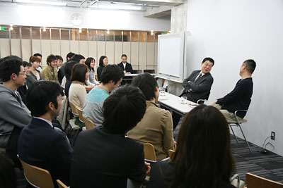 質問者4(男性): 今、就職活動してまして、 今日ここに行けば、 就職活動についての話が聞けるかなと、 思って来たんです。 自分は、面接中に結構緊張しちゃうんですけど、 向こうが怖そうな人だと、結構緊張しちゃって なかなかしゃべれないでいるんです。 そういうときの対処法などを 教えていただけますか。