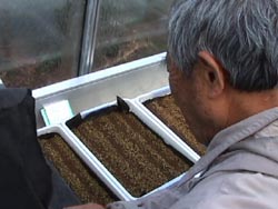 この間蒔いたカモミールを先生にチェックしてもらう!
