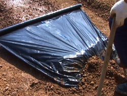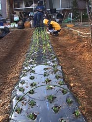 マルチにナイフで十字に切れ目をたくさん入れて、