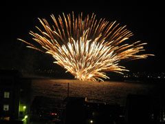 | <やっぱり花火はいいよねー> 先日、ロフトに『光るキャンディー』 (8月2日のミーハー通信へGO!)を買いに行ったら、 「申し訳ありません。ただいま品切れ中でして、 また1、2週間で入ってきます」 ってさ!!! 『光るキャンディー』やったじゃ〜〜〜ん!!! もしかして、わたし、貢献しちゃったカモ!?ね! でも、道で食べてる人見たことはないけどね・・・ いやあ〜夏といえば??? はい、そこの君。そう、その紫色のTシャツのあなた。 花火?そうね、花火。ぱあ〜〜〜ってね。キレイよね。 あたしはね、今年は1か所しか行ってないんだけど、 そこのは水中花火が名物らしくてさ。 すごかったよ。まるで爆発。 マジ爆発で、「あれれ失敗?」とか思っちゃう感じでさ。 海の上の船から海に投げ込まれてるんだって! なんで海の中で火が消えないのかがわかないんだけど、 なんかその船、動いてるの!! だから、どんどん近くなってくるんだよね。 わたしは遠くから見てたんだけど、 近くだったらかなりこわいよアレは。 ![]() こんなだわよ。 すごいでしょ???すごいのよ。おすすめよ。 最近の花火って結構お色々と バリエーションあるじゃん? そういう変わり花火が出てくると、 「あ!二コちゃん!!!」 「ハート!キュート〜」 「逆立ちあんぱんまん!?」 「ね、ねこ?ドラえもん??」 「土星?火星?なんか惑星!!」 とかついつい叫んじゃうんだけどさ。 好きなの。かわいいし!! ![]() これは、ニコリンチョ。 で、その変わり花火の中に、 なんか変な円グラフみたいなのがあってさ。 あれは、もうポピュラーなのかなあ? 今年初めて見た気がするんだけど。 イエスが60パーセントで、 ノーが40パーセントの円グラフみたいなやつなの。 何をモティーフにしてるのかが、 イマイチなぞなんだけど、結構多用されてて、 今の「イチ押し」って感じで使われてるんだけど、 どうしても何なのかはわかんなくて、 「コレはなんだろね〜」 なんて言ってたら、 近くで見てたちょっと合コンを兼ねたみたいな 男女の若者グループが、その花火があがった直後に、 「あ!12時40分!!!」 すごい早口! ああああ!時計ね!いいね、時計ね時計。はいはい。 また次にその時計があっがたら 「えーーっと、10時15分!?」 毎回上がる角度が違うから、時間も変わるわけですよ。 で、時計タイムになって、 時計花火が何発も連続で上がったタイムがあって、 「9時20分!!」 「3時50分!」 「8時15分!?」 「5時ー・・・ああもうわかんない!!」 って、またすごい早口で投げやりになってて、 ちょっとおもしろかったりね。 しかし変わり花火って色々あるけど、 毎年職人の人が切磋琢磨研究してるんだろうねー。 かっこいいなーーー。 女花火師もいるんだよね!かっちょええー。 で、今調べてたら、すごいサイトを見つけてしまった! 花火一覧表みたいなのが載ってんの! すごい勉強になるわ!!! えええ〜あれって、「麦わら帽子」だったの?? 「さかな」??? 「たんぽぽ」???? って感じだけど、色々あるのですね。 そして、やっぱりアレは「時計」だったんだわ。 やるわね、合コン兼ねての若者たちめっ。 ああサンタクロースの花火とかないかなあ〜。 夏なのに。 かわいいよねきっと。 誰か作ってくれないかな。 トナカイでもいいけど。 サンタさんは難しそうだけど、 トナカイはちょっと簡単じゃない? また来年、どんな新しい変わり種が出てくるか とっても見ものですなはなは。 夏が終わっちゃいそうで、ちょっぴりおセンチ、 さみしくなっちゃってるゆーないとでしたっ!!! (気、早っ!) |