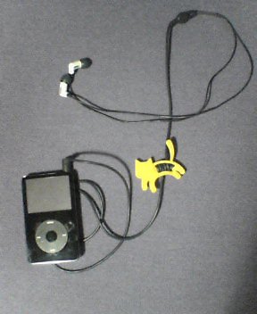 お腹に巻き巻きイヤホンのコードを巻き付けるの。