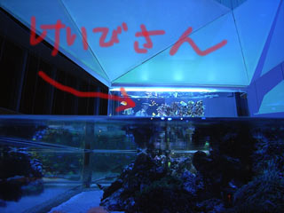 おや? 警備員さんが水槽のむこうに・・・。
