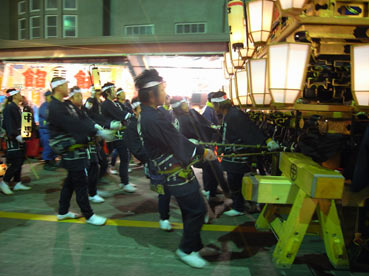 山車の後ろ側の人は、ヒモを引いてるんだよね。