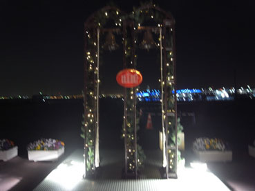 ひとりで、両手を使い、左右の鐘をつきまくる。