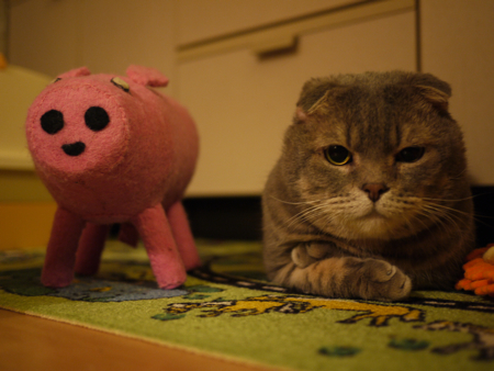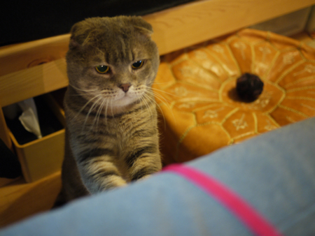 すぐにベッドの下に隠れてしまった、へんちゃん。