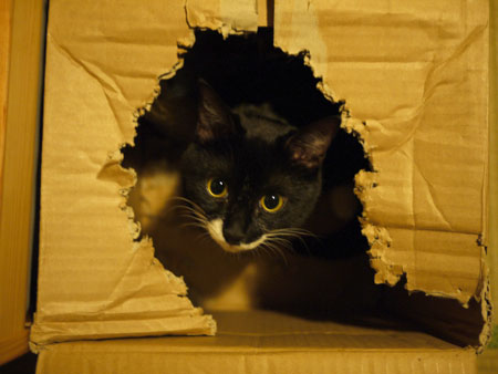 猫が一般的に好むダンボールに入ってみたと思ったら。