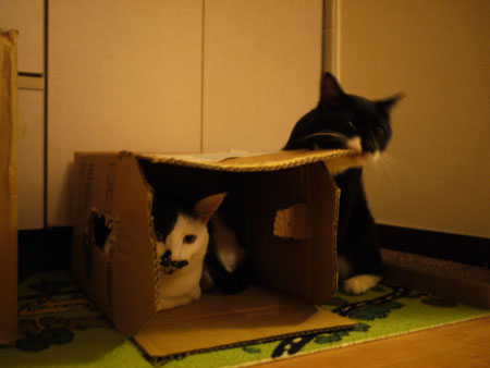 海苔が走って追いかけて、くわえて戻ってくるというやつ。