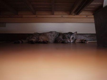 すぐに、ベッドの下に隠れちゃったんだけど、
