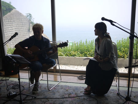 オーシャンビューの広間で、逆光ライブ。