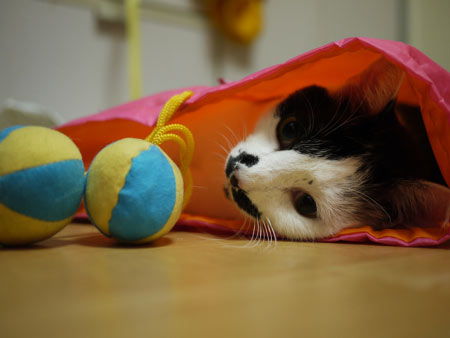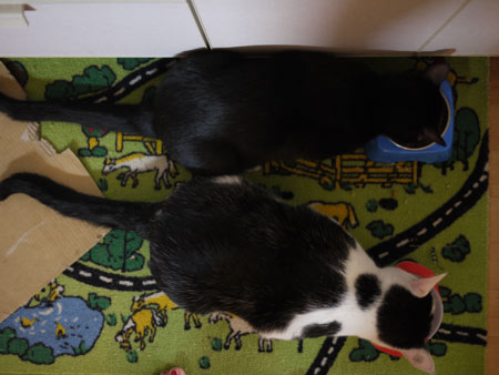 「2匹のねこがやってきて、去ってった。」
