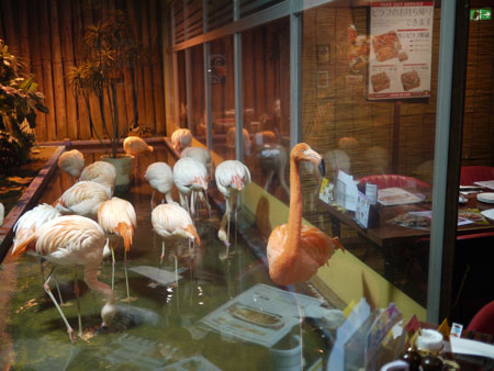 フラミンゴがいて、ごはんを食べる、という