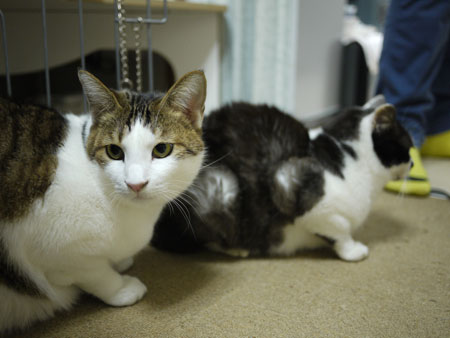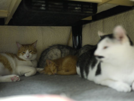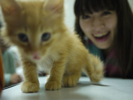 新入りの超小さい仔猫が、仲間入りして、