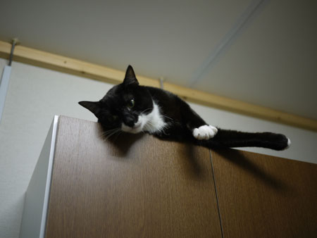 海苔は、なぜか棚の上にのぼって、