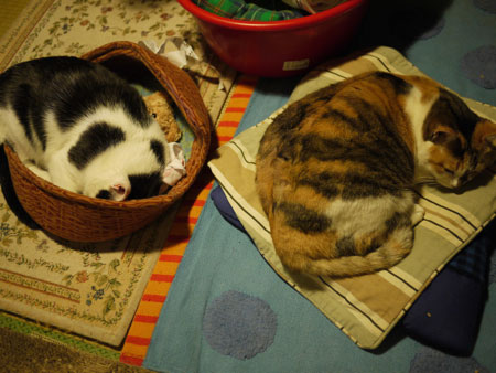 あたたまる2匹の近くに行って、